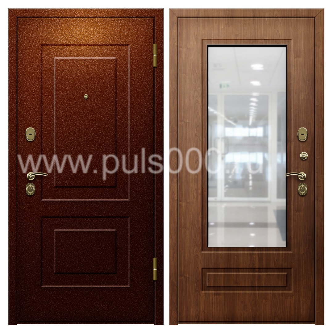Входная дверь с зеркалом, напылением и МДФ в коттедж PR-1105